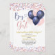 Navy Blue and Blush Pink Balloon Gender Reveal Invitation