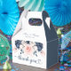A beautifully crafted favor box featuring an elegant blend of navy blue and blush pink florals,