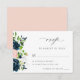 Elegant simple minimalist floral wedding response rsvp card featuring a beautiful dark midnight navy blue and pastel pink blush flowers bouquet with greenery foliage and a chic trendy calligraphy script. ++++++++++++ Easy to personalize with your details! Suitable for modern elegant rustic bohemian outdoor botanical garden theme weddings. +++++++++++++++ If you need assistance in customizing it, please contact me by e-mail: designer@sunflowersandcheers.com