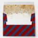 Navy blue and burgundy red stripes outside and gold glitter inside nautical wedding envelopes
