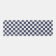 Bold geometric pattern of navy blue and cream squares form a checkered pattern.