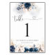 Navy Blue and Dusty Rose Wedding Table Numbers