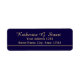 Elegant stylish return address label featuring name in gold calligraphy font style and address in gold professional font style with gold line at the bottom of the design on navy blue background.