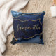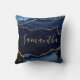 Navy Blue and Faux Gold Glitter Marble Agate Throw Pillow