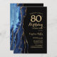 Navy Blue And Gold Agate 80th Birthday Invitation