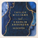 This elegant and glamorous wedding coaster features a navy blue agate marble background with faux gold glitter accents. The text combines handwritten script and modern sans serif fonts for a classy and sophisticated look. This will be perfect for autumn fall and winter weddings.