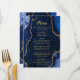 Display your meal selections in style with this elegant wedding menu featuring a navy blue agate marble design accented with gold details. The geode-inspired background creates a sophisticated look, perfect for fall and winter weddings, formal celebrations, or evening events. Designed to coordinate with your wedding stationery suite, this menu is ideal for presenting courses clearly while adding a luxurious touch to your table setting. The clean typography ensures readability while complementing the agate texture. Easily personalize all text to suit your menu and event details, making it a beautiful choice not only for weddings but also for engagement parties, anniversaries, and other formal occasions.
