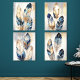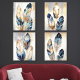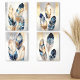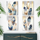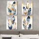 Elevate your home decor with this stunning abstract feather art set, featuring a captivating blend of navy blue, gold, and neutral tones. Each piece showcases intricately detailed feathers with a soft metallic shimmer, adding a touch of luxury and sophistication to any room. The delicate textures and graceful forms of the feathers create a harmonious, modern aesthetic, making it a perfect choice for living rooms, bedrooms, or office spaces. This artwork set is ideal for those seeking a chic, nature-inspired design with an elegant flair.