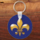 This keychain features a gold fleur de lis symbol on a navy blue background. Makes a great gift.