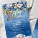 Navy Blue and Gold Floral Roses 80th Birthday Invitation