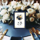 Navy Blue and Gold Floral Wedding Table Number