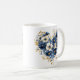Navy Blue and Gold Flowers in Heart Shape Coffee Mug