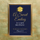 An elegant graduation party favors sign persoanlized in chic typography on a navy blue background. Designed by Thisisnotme©