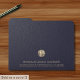 Elevate your office organization with our Navy Blue and Gold Justice Scale File Folder Set. The luxurious navy blue leather print background adorned with a brushed gold justice scale logo and classic golden typography featuring your company name and details exudes professionalism and sophistication. These folders are designed for legal professionals, attorneys, and anyone who values impeccable organization. With a refined touch of elegance, you can now make a lasting impression in every document you present or store. Stay organized in style with this exclusive set, available for customization and personalization. Upgrade your office essentials today.