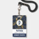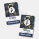 Personalized name badge with a stylish and elegant background of navy blue and gold marble.