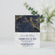 Wedding save the date postcard with a stylish and elegant looking background of navy blue and gold marble. The bottom half of the card has an off white marble pattern as well, with your personalized text written over top.
