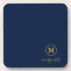 This personalized coaster set is simple, sophisticated and elegant. It features a navy blue background with a gold monogram and script typography for your personalization. Colors can be customized to your choosing