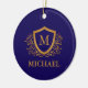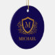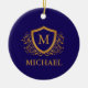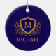 Navy Blue and Gold Personalized Monogram Name Ceramic Ornament