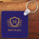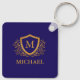 Navy Blue and Gold Personalized Monogram Name Keychain