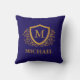 Navy Blue and Gold Personalized Monogram Name Throw Pillow