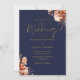Navy Blue And Gold Rustic Floral Wedding Invitation