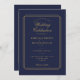 Navy Blue and Gold Script QR Code Art Deco Wedding Invitation