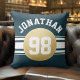 Navy Blue and Gold Sports Jersey Stripes Name Throw Pillow