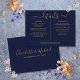 An elegant wedding details information enclosure card personalized with your special details set in stylish gold typography and your names and wedding date on the reverse on a navy blue background. You can customize the background to your favorite wedding theme color. Designed by Thisisnotme©