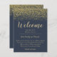 Navy Blue and Gold Wedding Welcome Hotel Card Note