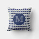 Navy Blue and Gray Quatrefoil Monogram Throw Pillow