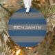 Navy Blue and Gray Rugby Stripes with Custom Name Ornament