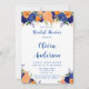 Navy Blue and Orange Florals Bridal Shower Invitation