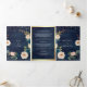 Navy Blue and Peach Floral Photo QR Code Wedding Tri-Fold Invitation