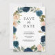 Navy Blue and Peach Floral Photo Wedding Save The Date