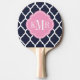 Navy Blue and Pink Moroccan Quatrefoil Monogram Ping Pong Paddle