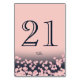 Blush pink and navy blue twinkle light effect design table number card to compliment matching wedding set.