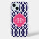 Navy Blue and Pink Trellis Monogram Case-Mate iPhone Case