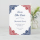Complement your rustic navy blue and red wedding party with these beautiful save the date cards featuring elegant floral lace.