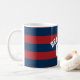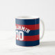 Navy Blue and Red Rugby Stripes Name Number Coffee Mug