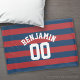 Navy Blue and Red Rugby Stripes Name Number Pillow Case