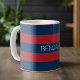 Navy Blue and Red Rugby Stripes with Custom Name Coffee Mug