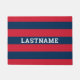 Navy Blue and Red Rugby Stripes with Custom Name Doormat
