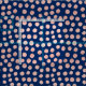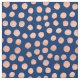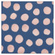 Navy and rose gold dot fabric. Large scattered artistic rose gold dots pattern on a navy blue background.