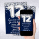 Plain white envelopes are included with paper invitations and will come to fit the invitation size you select. If you don’t need the envelopes, you may choose to not receive them by selecting the dropdown below "Envelopes" and choosing "None." If you’d like to have a design on your envelopes, you can browse all of these available envelopes to find the design that complements your Navy Blue And Silver 12th Birthday Invitation.
