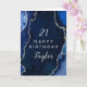 This elegant and glamorous birthday card can be personalized with a name or title such as mom, daughter, granddaughter, niece, friend etc. The design features a navy blue agate marble background with faux silver glitter accents. The text combines handwritten script and modern sans serif fonts for a classy and sophisticated look.
