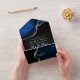 Navy blue and faux silver glitter agate stone wedding invitation with accents of black customizable to your event specifics.
