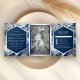 Navy Blue and Silver Foil Tropical Palm Wedding Tri-Fold Invitation