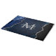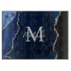 This cutting board features an elegant and glamorous agate marble background with geode gemstone detailing and faux silver glitter accents. The monogram combines handwritten script and modern sans serif fonts for a classy and sophisticated look. This will make the ideal gift as it can be customized with a name and initial. The deep blue hues make it perfect for autumn fall and winter.