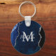 Navy Blue and Silver Marble Agate Keychain