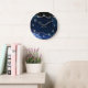 This clock features an elegant and glamorous agate marble background with geode gemstone detailing and faux silver glitter accents. The deep blue hues make it perfect for autumn fall and winter.